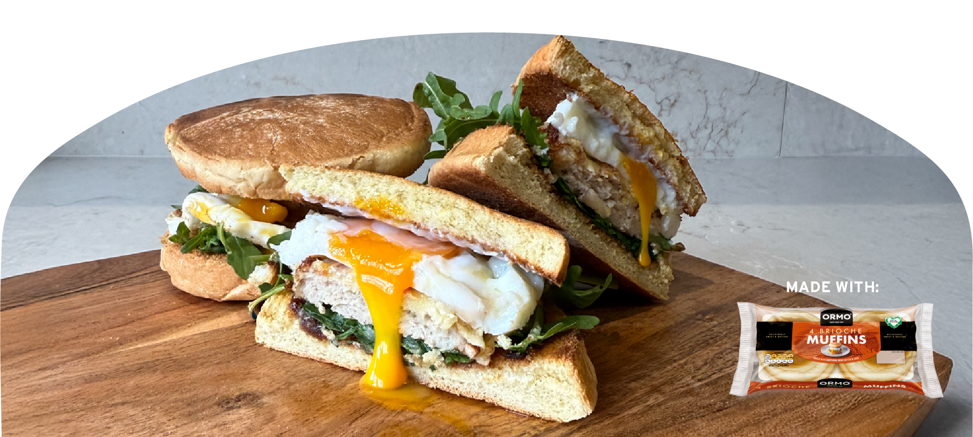 Golden brioche muffins cradle a molten-cheese chicken patty, sweetened with fig chutney and lifted by fresh rocket. A soft poached egg spills its warm yolk over everything, mingling with gentle heat from chilli flakes. It’s cosy, rich, and irresistible!